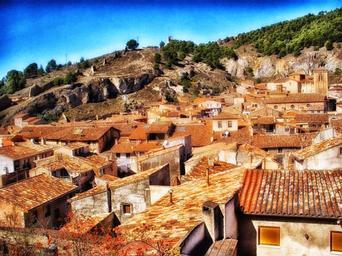 Keywords: daroca spain town rooftops houses architecture sky hdr