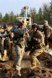 | Keywords: 82nd airborne division 82ndairbornedivision 82nd airborne divarty 82ndairbornedivarty divarty dart 319th afar 319thafar gun devils gundevils howitzer hipshoot m119a3 redleg artillery airborne usarmy outdoor people sport Airborne Artillerymen assigned to the 82nd Airborne Division Artillery ram the 155MM projectile into their M777A2 howitzer during an emergency fire mission, also known as a hip shoot during a Division Artillery Readiness Test on Fort Bragg N.C., March 2, 2016. The DART tests the battery in support of Global Response Battalion 1 on the their ability to conduct standard and non-standard fire missions such as the out of traverse, and emergency fire missions both day at night under stressful situations to ensure they can support any mission for GRB-1 within 18 hours of notification. (82nd ABN DIVARTY PAO, Capt. Joe Bush/ Released). Airborne Artillerymen assigned to the 82nd Airborne Division Artillery ram the 155MM projectile into their M777A2 howitzer during an emergency fire mission, also known as a hip shoot during a Division Artillery Readiness Test on Fort Bragg N.C., March 2, 2016. The DART tests the battery in support of Global Response Battalion 1 on the their ability to conduct standard and non-standard fire missions such as the out of traverse, and emergency fire missions both day at night under stressful situations to ensure they can support any mission for GRB-1 within 18 hours of notification. (82nd ABN DIVARTY PAO, Capt. Joe Bush/ Released). |