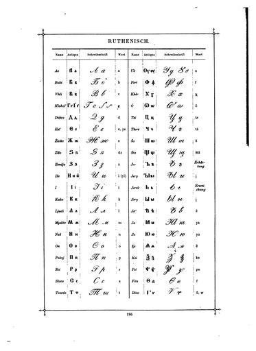 Keywords: Das Buch der Schrift (Faulmann) 201.jpg 200 202 Ruthenian language Early Cyrillic alphabet Handwriting Cyrillic alphabet charts