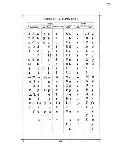 Keywords: Das Buch der Schrift (Faulmann) 219.jpg 218 220 Latin alphabet charts Paläographie Schriftproben Roman type Italics Incunabula Font comparisons