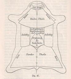 | Keywords: Das Ganze der Kürschnerei, Paul Cubäus, Alexander Tuma, 2. Auflage (04 - Fig. 37, S. 306).jpg Technical book for Furriers Paul Cubaeus überarbeitet von Alexander Tuma Das Ganze der Kürschnerei Gründliches Lehrbuch alles Wissenswerten über Warenkunde Zurichterei Färberei und Verarbeitung der Pelzfelle Zweite neu bearbeitete Auflage von Alexander Tuma Seite 306 Fig 37 Die Figur 37 stellt die Einteilung eines sehr großen Bären in Kragen und Aufschlägen vor S 37 Aus dem Vorwort zur zweiten Auflage Larisch brachte wirklich Praktisches und den modernen Zeitverhältnissen angepaßtes Alles was früher erschien verdankte sein Entstehen einem Nichtfachmann der natürlich seine Unterlagen erst sammeln mußte auch weil ihm ein tieferes Verständnis für die Sache ständig mangelte viel Unrichtiges Verfehltes oder durchaus unpraktische Anschauungen niederlegte oder aber es erschien über einzelne besonders wichtige Teile der Branche ein Broschürchen von einem Fachmann dem wiederum nur empirische Kenntnisse zur Seite standen aber das nötige wissenschaftliche Verständmnis gerade so gut wie die Fähigkeit klar und deutlich zu erklären abging Das verdienstvolle Werk von Hanicke und Klette mit seinen wunderbaren Zeichnungen erklärt sich selbst als nur für Vortgeschrittene geschrieben und darf andererseits wohl auch als etwas zu teuer bezeichnet werden Das vorliegende Werk hat diesen Mangel bereit in seiner ersten Auflage abgeholfen Collection Kuhn unknown first edition of Cubäus was 1891 Paul Cubaeus PD-old Das Ganze der Kürschnerei von Paul Cubaeus 1891 Zweite Auflage Bear fur-skin manufacturing Fur collar manufacturing |