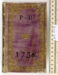 Keywords: Das Privilegirte ... Dressdnische Gesang-Buch -bound with three other texts- - Upper cover (Davis645).jpg Style Dated Frame Lettered cover eg intitals titles; Caption Upper cover; Colour Purple; Edge Gilt and gauffered exhibition history Decorative Technique Tooled in gold Tooled in silver Stained; Cover Material Parchment may include vellum Initials P D and date 1736 silver tooled on the upper cover Purple block-printed pastepaper pastedowns object history Text 1734; Dresden Leipzig; Unspecified object type Cc-zero place of creation Binding Germany place of discovery See M M Foot The Henry Davis Gift vol II London 1983 British Library image http //www bl uk/catalogues/bookbindings/LargeImage aspx RecordId 020-000004626 ImageId ImageId 41918 Copyright BL Das Privilegirte Dressdnische Gesang-Buch bound with three other texts Uploaded with GWToolset Das Privilegirte Dressdnische Gesang-Buch bound with three other texts - Upper cover Davis645 http //www webarchive org uk/bldatasets/bindings/6493_4 jpg Bookbinding 18th-century bookbinding British Library Bookbindings |