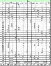 Keywords: Datos diarios de lluvia.PNG Ejemplo de datos diarios de precipitaciones en una estación hipotética 2006-01-12 own assumed Alfredobi Data tables Weather observations