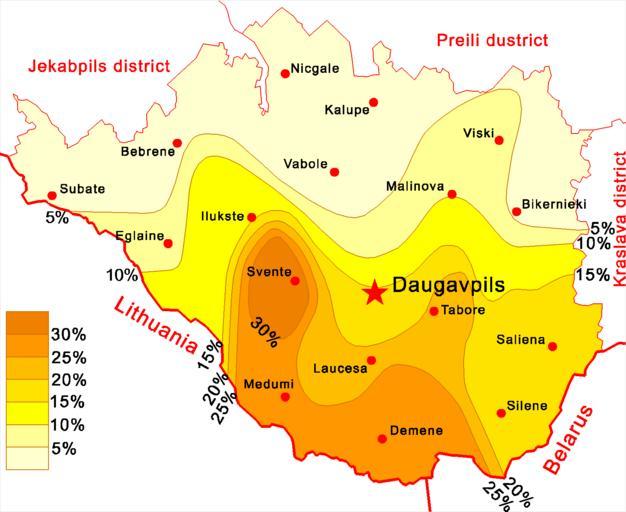 Keywords: Daugavpils district ethnic Poles percentage.png en Ethnic Poles percentage in the Daugavpils district Latvia Statistic data 2006 from the Daugavpils district official site http //www drp lv Own Bogomolov PL 2008-10-07 Maps of Latvia Maps of Daugavpils municipality Demographics of Daugavpils municipality Ilūkste Municipality Maps of the Poles Polish minority in Latvia |