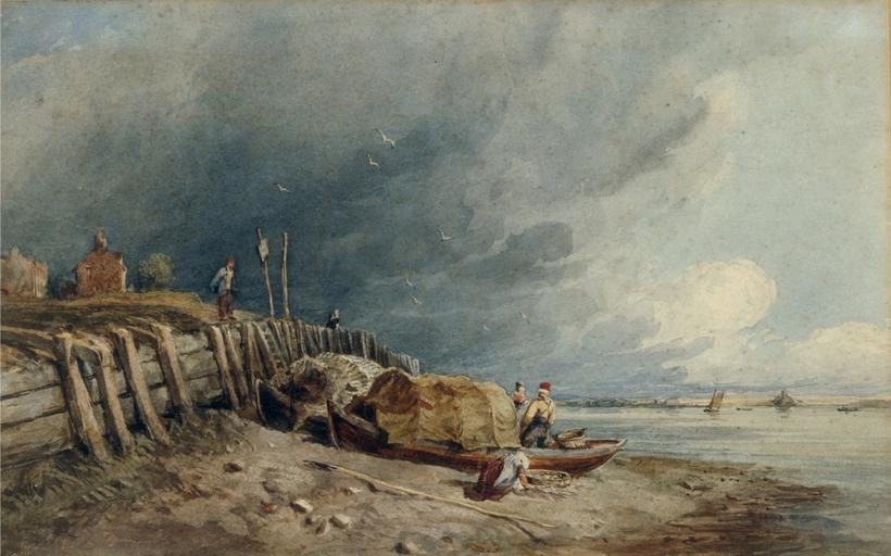 Keywords: David Cox (I) - Fishermen and their Boats at Millbank on the Thames.jpg Artwork Creator David Cox the elder langSwitch Watercolour over pencil heightened with bodycolour and gum arabic cm 21 33 Institution Private collection object history sold at Sotheby's London 8 April 1998 Lot 117 credit line accession number http //www kunst-fuer-alle de/english/fine-art/artist/image/david-y--cox/14244/1/140408/fishermen-and-their-boats-at-millbank-on-the-thames/index htm kunst-fuer-alle de PD-old-100 DEFAULTSORT Cox David 1 Artworks of David Cox 19th-century landscape paintings Paintings of the Thames Fishermen in art Images from kunst-fuer-alle de Millbank London |