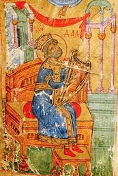 | Keywords: David the Prophet (Georgian Psalter MSS, 1494) 01.jpg en A miniature from the Georgian Psalter MSS copied at the behest of Kvarkvare and Mzechabuk Jaqeli in Samtskhe in 1494 1494 Chkhikvadze Nestan ed 2010 Georgian Manuscript Book Tbilisi National Centre of Manuscripts ISBN 978-9941-0-3093-2 p 84 author Custom license marker 2014 05 12 PD-old-100 Uploaded with UploadWizard King David playing harp David in miniature Golden Gospel | ||||