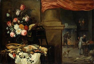 Keywords: David Teniers (II), Nicolaes van Verendael, Carstian Luyckx - Kitchen still life with a vase of flowers, dead birds, a fish and a cat.jpg Artwork creator David Teniers II creator Nicolaes van Verendael Vase with flowers Creator Carstian Luyckx hunting still life bird cage dead fish and the cat on the left around the vase en Kitchen still life with a vase of flowers dead birds a fish and a cat circa 1670 /75 http //skd-online-collection skd museum/de/contents/showSearch id 408791 Oil canvas size cm 83 120 Institution Gemäldegalerie Alte Meister Dresden object history credit line signed upper left n v verendael f in brown signed lower right D T signed center carstian Lyckx on the bird cage accession number PD-old-100 Carstian Luyckx 01 Still-life paintings by Nicolaes van Verendael Kitchen interiors by David Teniers the Younger Flemish paintings in the Gemäldegalerie Alte Meister Dresden |
