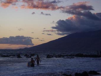 Keywords: dawn maui hawaii surfer swimmer ocean sea landscape