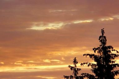 Keywords: dawn sunrise clouds sky contrast tree spruce view summer climate nature