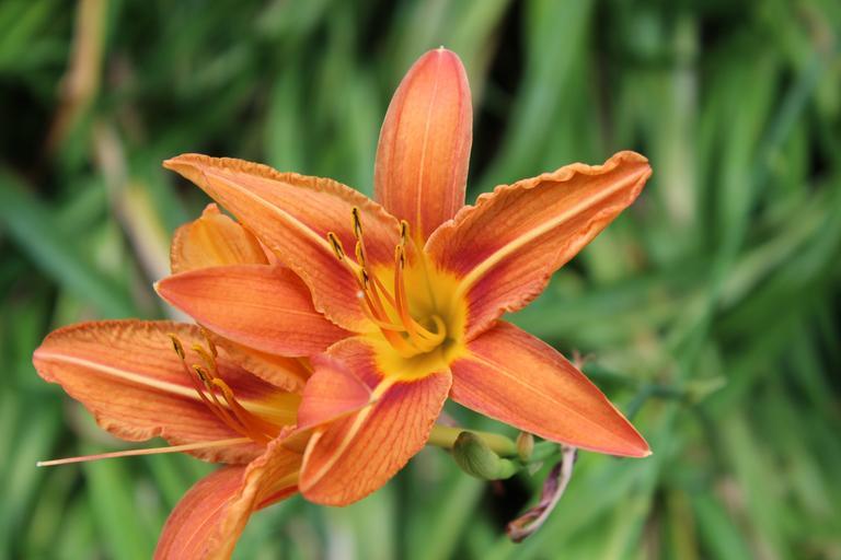 Keywords: daylily lily orange yellow flower blossom bloom plant garden flora hemerocallis fulva stamens