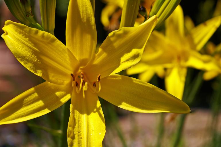 Keywords: daylily yellow day lily yellow flower garden yellow blossom bloom flower lily plant summer botanical nature bright petals beautiful colorful decorative intense color flora vibrant color bloom color