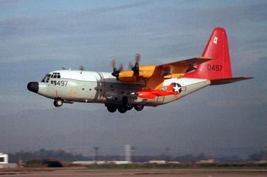 | Keywords: DC-130A VC-3 taking off from Point Mugu 1983.JPEG  A U S Navy Lockheed DC-130A Hercules BuNo 570497 assigned to Composite Squadron VC-3 Bloodhounds at Naval Air Station Point Mugu California USA on 27 January 1983 carrying BQM-34S Firebee drones This aircraft had been delieverd to the U S Air Force as an C-130A-45-LM in 1957 and was retired on 8 January 1979 It was transferred to the U S Navy on 13 March 1979 and converted to a DC-130A drone control aircraft Curiously it kept its USAF serial number and was not assigned a regular USN BuNo It became the oldest C-130 in US military service and was even deployed to Iraq in 2003 It was finally retired to the AMARC as 2G0055 on 27 June 2007 http //www defenseimagery mil U S DefenseImagery photo VIRIN http //www dodmedia osd mil/DVIC_View/Still_Details cfm SDAN DNSC8404495 JPGPath /Assets/1986/Navy/DN-SC-84-04495 JPG DN-SC-84-04495 1983-01-27 PHAN Sherry DeLong USN PD-USGov-Military-Navy DC-130A Hercules Pacific Missile Test Center Point Mugu Ryan Firebee Fleet Composite Squadron 3 United States Navy |