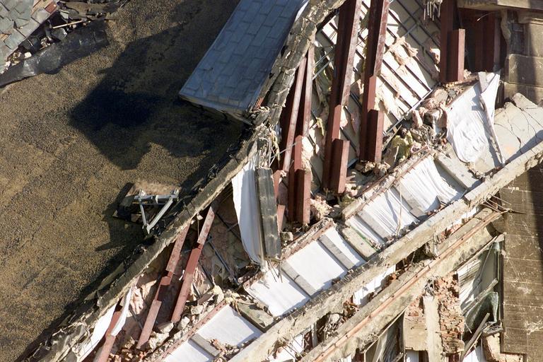 | Keywords: DD-SD-03-17493.JPEG A high angle view-showing part of the damage near the impact area where a hijacked Boeing 757 hit the Pentagon The morning before in an attempt to frighten the American people five members of Al-Qaida a terrorist group of fundamentalist Muslims hijacked American Airlines Flight 77 then flew it into the Pentagon killing all 64 passengers onboard and 125 people on the ground http //www dodmedia osd mil/Assets/Still/2003/DoD/DD-SD-03-17493 JPEG 2001-09-12 MICHAEL GARCIA CIV DOD PD-USGov PD-USGov The Pentagon on 12 September 2001 2001 photographs |