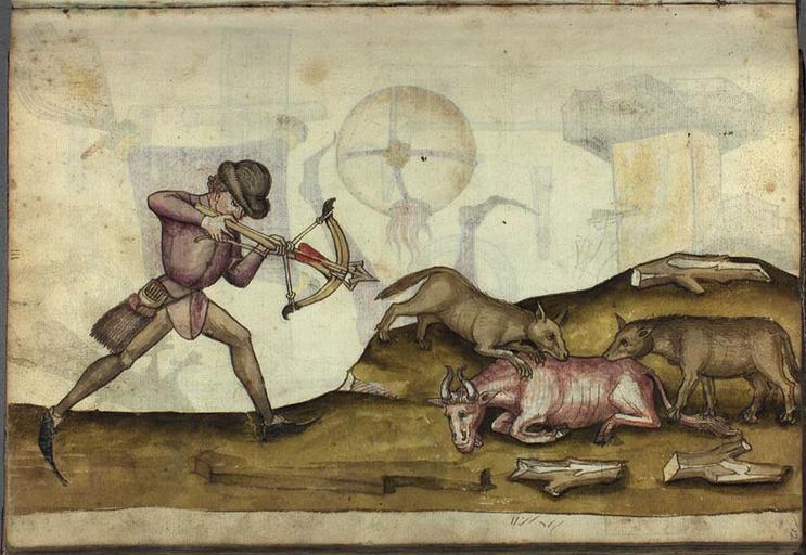 Keywords: De Alte Armatur und Ringkunst Talhofer 028.jpg 027 029 Crossbows in art Wolf hunting in art