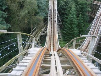 Keywords: De Efteling Pegasus.jpg This is a view of the top of the rollercoaster Pegasus in the Efteling Uitzicht vanaf de eerste afdaling van de achtbaan Pegasus in de Efteling 2006-10-03 own assumed De Efteling Pegasus Efteling