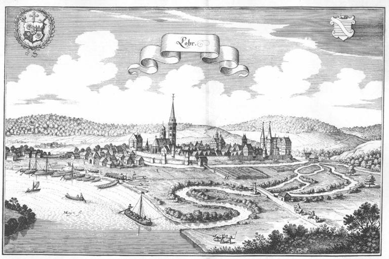 Keywords: De Merian Frankoniae 077.jpg 076 078 Engravings of Topographia Franconiae Lohr am Main Main in art Stone arch bridges in Bavaria Bridges in Landkreis Main-Spessart