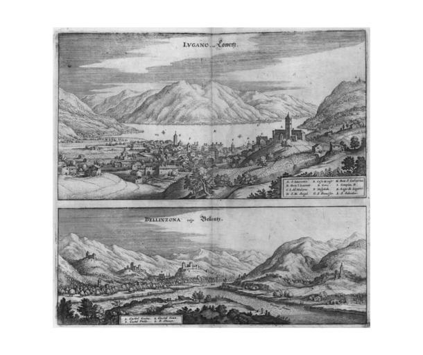 Keywords: De Merian Helvetiae, Rhaetiae et Valesiae 155.png 154 156 Historical images of Bellinzona Lugano in art