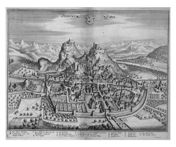 Keywords: De Merian Helvetiae, Rhaetiae et Valesiae 177.png 176 178 Historical images of Sion