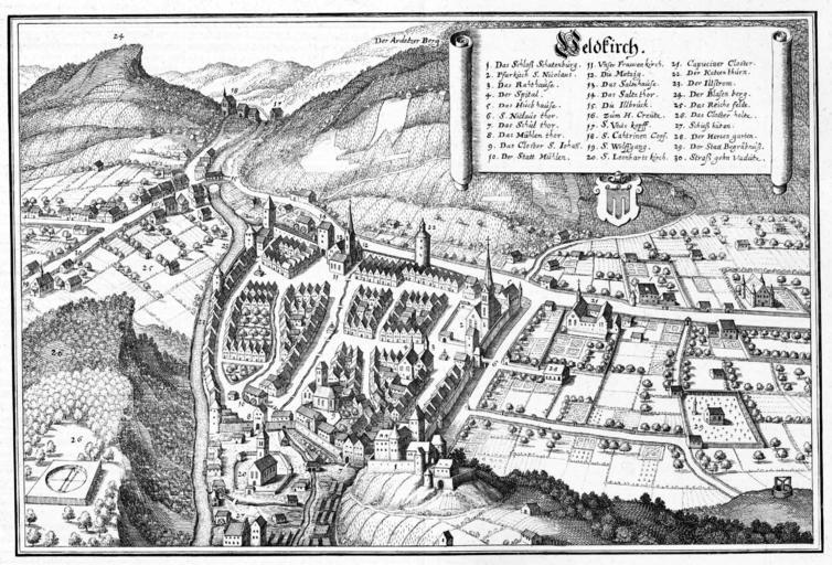 Keywords: De Merian Sueviae 257.jpg 256 258 History of Feldkirch Old maps of Vorarlberg Merian Sueviae picture
