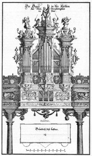 Keywords: De Merian Sueviae 270.jpg 269 271 Merian Sueviae picture Pipe organs in Ulm Ulm in art Pipe organs in art Dreifaltigkeitskirche Ulm