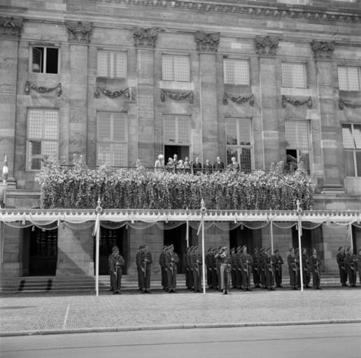 | Keywords: blackandwhite monochrome outdoor black and white 2.24.14.02 255-7287\  Fotograaf: Willem van de Poll   Nederlands: De nieuwe koningin met haar gezin op het paleisbalkon, nadat prinses Wilhelmina zich heeft teruggetrokken. Daarnaast v.l.n.r. de drie leiders van de deputaties uit de Overzeese Gebiedsdelen: mr.dr.M.F. da Costa Gomez (Curacao), mr.dr. R.H. Pos (Suriname) en prof.dr. T.H. Hoesein Djajadiningrat (Indonesië), minister-president dr. W. Drees en prof.mr. R. Kranenburg, voorzitter van de Eerste Kamer, die in het paleis de akte van abdicatie mede hebben ondertekend 4 september 1948   English: The new queen and her family on the palace balcony after Princess Wilhelmina withdrew. Furthermore, from left to right the three leaders of the deputations from the Overseas Territories: mr.dr.MF da Costa Gomez (Curacao), Dr Jan R.H. Pos (Suriname) and Prof. T.H. Hussein Djajadiningrat (Indonesia), Prime Minister Dr. W. Drees and Professor R. Kranenburg, president of the Senate, as the co-signers of of the deed of abdication September 4, 1948  Hebt u meer informatie over deze foto, laat het ons weten. Laat een reactie achter (als u ingelogd bent bij Flickr) of stuur een mailtje naar: info@nationaalarchief.nl  Please help us gain more knowledge on the content of our collection by simply adding a comment with information. If you do not wish to log in, you can write an e-mail to: info@nationaalarchief.nl  Meer foto’s van het Nationaal Archief zijn te vinden in de fotocollectie op gahetna.nl: www.gahetna.nl/collectie/afbeeldingen/fotocollectie/  2.24.14.02 255-7287\  Fotograaf: Willem van de Poll   Nederlands: De nieuwe koningin met haar gezin op het paleisbalkon, nadat prinses Wilhelmina zich heeft teruggetrokken. Daarnaast v.l.n.r. de drie leiders van de deputaties uit de Overzeese Gebiedsdelen: mr.dr.M.F. da Costa Gomez (Curacao), mr.dr. R.H. Pos (Suriname) en prof.dr. T.H. Hoesein Djajadiningrat (Indonesië), minister-president dr. W. Drees en prof.mr. R. Kranenburg, voorzitter van de Eerste Kamer, die in het paleis de akte van abdicatie mede hebben ondertekend 4 september 1948   English: The new queen and her family on the palace balcony after Princess Wilhelmina withdrew. Furthermore, from left to right the three leaders of the deputations from the Overseas Territories: mr.dr.MF da Costa Gomez (Curacao), Dr Jan R.H. Pos (Suriname) and Prof. T.H. Hussein Djajadiningrat (Indonesia), Prime Minister Dr. W. Drees and Professor R. Kranenburg, president of the Senate, as the co-signers of of the deed of abdication September 4, 1948  Hebt u meer informatie over deze foto, laat het ons weten. Laat een reactie achter (als u ingelogd bent bij Flickr) of stuur een mailtje naar: info@nationaalarchief.nl  Please help us gain more knowledge on the content of our collection by simply adding a comment with information. If you do not wish to log in, you can write an e-mail to: info@nationaalarchief.nl  Meer foto’s van het Nationaal Archief zijn te vinden in de fotocollectie op gahetna.nl: www.gahetna.nl/collectie/afbeeldingen/fotocollectie/ |