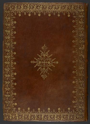 Keywords: De Trinitate, De Synodis and Contra arianos - Lower Cover (Harley ms 3115).jpg Style Harleian centrepiece and border of small tools; Caption Lower Cover; Colour Brown Gold; Edge Unspecified exhibition history Decorative Technique Panel stamp in gold; Cover Material Leather unspecified Unspecified object history Text 9c; Germany; Unspecified object type Cc-zero place of creation Binding England place of discovery Unspecified British Library image http //www bl uk/catalogues/bookbindings/LargeImage aspx RecordId 020-000018430 ImageId ImageId 57092 Copyright BL De Trinitate De Synodis and Contra arianos Uploaded with GWToolset De Trinitate De Synodis and Contra arianos - Lower Cover Harley ms 3115 http //www webarchive org uk/bldatasets/bindings/harley_ms_3115_fbrigv jpg Bookbinding 18th-century bookbinding British Library Bookbindings |