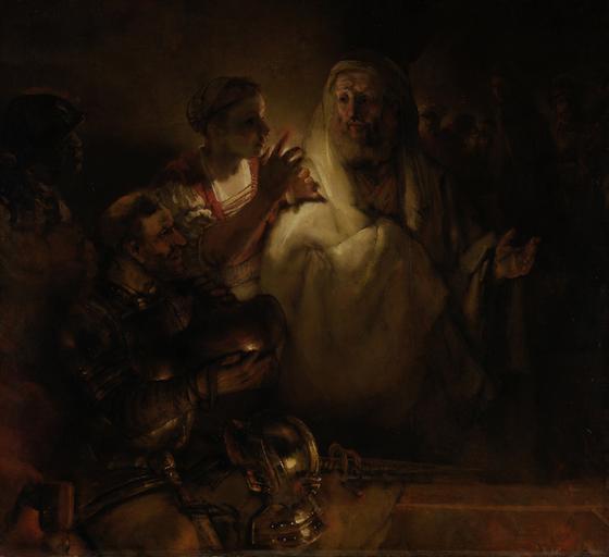 | Keywords: De verloochening van Petrus Rijksmuseum SK-A-3137.jpeg Artwork Q3874247 LangSwitch St Peters'denial With his left hand the disciple Peter makes a gesture of denial in response of the accusations made by Caiaphas' maidservant who is standing next to him holding a candle To the left two soldiers in armor are present one of whom is sitting at a table To the right a chained Christ looks over his shoulder while he is being taken away De verloochening van Petrus De discipel Petrus maakt met zijn linkerhand een gebaar in ontkenning op de beschuldiging van de dienstmaagd van Kajafas die met een kaars in de hand naast hem staat Links twee soldaten in wapenrusting waarvan één zittend aan een tafel uit een kan drinkt Rechts op de achtergrond keert de geboeide Christus zich om terwijl hij door soldaten wordt afgevoerd Oil on canvas cm 154 169 Institution Rijksmuseum Amsterdam Rembrandt 1660 signature and date bottom right ~ Object history by 1687-03-24 Marten Davidsz van Ceulen Amsterdam by 1752 Marc-René de Voyer d'Argenson 1722-1782 Paris ˜Un grand tableau de Rembrant représentant le reniement de S Pierre ™ or 1759 1760 purchase Claude-Alexandre de Villeneuve comte de Vence 1702-1760 Paris Marc-René de Voyer d'Argenson Paris - 1761-02-09 1761-02-17 sale Comte de Vence P Remy Paris 49 Price FRF 500 ˜Rembrandt Van-Rhein Un excellent Tableau représentant le Reniement de S Pierre Ce tableau est peint sur toile de 4 pieds 8 pouces de haut sur 5 pieds 2 pouces de large ™ by 1780 Sylvain-Raphaël de Baudouin Paris ˜Deux grands tableaux faisant pendants L'un représente le réniement de St pierre; Cet Apôtre la Tète et le Corps couverts d'une grande Draperie de Laine blanche Est deboust devant un foÿer Sa main droite est appuïée sur sa poitrine et de la gauche il semble se déffendre de la question que lui fait une Servante qui l'envisage avec attention a la clarté d'une lumière qu'elle tient entre ses doigts Un Soldat armé de toutes pièces assis près du foÿer et dont le Casque et l'epée sont posés devant lui tient dans ses mains une grosse Cruche et cefse de boire pour écouter la réponce de l'apotre qu'il regarde attentivement On apperçoit dèrierre lui un autre Soldat deboust appuÿé sur son Epée; il est aufsi armé de toutes pieces et porte la même attention sur St pierre Ces quatre figures sont de grandeur de nature Au haut du tableau on voit a droite sur un plan plus éloigné jesus avec deux Soldats dont un lui tient les mains liées derrière le dos; Il est deboust devant trois juges Coëffés de turbans L'effet étonnant de ce morceau qui ne reçoit la lumière que de la Chandelle qui est entre les doigts de la Servante L'espression la couleur vigoureuse et la fierté de la touche le mettent au rang des plus Capitaux de ce maître Largeur 5 pieds 1 pouce sur 4 pieds 8 pouces de haut ™ ProvenanceEvent 1781 purchase Melchior Grimm Sylvain-Raphaël de Baudouin Paris Catherine II of Russia 1729-1796 Saint Petersburg - 1781 1933-07-10 Hermitage Museum Saint Petersburg ProvenanceEvent 1933-07-10 purchase LangSwitch das the le het Rijksmuseum Amsterdam Amsterdam LangSwitch die Sowjetunion the Soviet Union l'Union soviétique de Sovjetunie Ucfirst Anonymous SK-A-3137 De verloochening van Petrus Ucfirst Anonymous 2928 LangSwitch The denial of Peter De verloochening van Petrus Mattheus 26 69-75 Ucfirst Anonymous 20186116 Die Verleumdung Petri Ucfirst Anonymous de-verloochening-van-petrus 100006500 De verloochening van Petrus Blankert A 'Rembrandts Nachwerk' Kunstschrift 2006 3 juni/juli Bok Marten Jan Kunstbezit in de Amsterdamse familie van Ceulen p 149-166 Brion Marcel 'Rembrandt sa vie' Jardin des Arts 1969 176/177 juli-augustus p 16 Camon Aznar J 'La pentura de Rembrandt y su justification religiosa' Goya 1979 151 p 5 afb Deene J F van 'De compositie van Rembrandt's Verloochening door Petrus ' Maandblad voor Beeldende Kunsten XI 1934 p 115 e v afb Gerson H De Nederlandse schilderkunst III 1952 p 15 afb 31 Grimm Claus 'Handschrift schildertechniek en beeldstructuur Bijdrage tot het onderzoek naar toeschrijving I de helmen van Rembrandt' Tableau 1982 /83 5 dec /jan p 242 afb Hudson J R 'Pictorial sources for Rembrandt's Denial of St Peter' Oud Holland LXXIX 1964 p 141 Jager J 'Revolutionaire kunstbuit erfgoed of handelswaar' Spiegel Historiael 36 2001 11-12 p 496-503 Johnson Inger Helene 'Reflections on The Denial of the Apostle Peter from the 'Commodilla Master' to Rembrandt' Det Kongelige Norske Videnskabers Selskab 1976 p 1-30 Kühn H Untersuchungen zu den Mahlgründen Rembrandts in Jahrbuch der Staatlichen Kunstsammlungen in Baden-Württemberg 1965 p 202 Nicolson B 'The international Caravaggesque movement' Simiolus 12 1981/82 2/3 p 171 Vels Heijn A Rembrandt in Jaarboek van het Centraal Bureau voor Genealogie 1990 dl 44 Weisbach Werner Rembrandt 1926 p 465 Exhibition history Rembrandt Tentoonstelling 1935 27 Van Jeroen Bosch tot Rembrandt 88 A loan exhibition of Rembrandt at Wildenstein 22 Dutch Pictures 1450-1750 188 Holländer des 17 Jahrhunderts 122 Mostra di pittura olandese del seicento 122 Mostra di pittura olandese del seicento Milan 112 Dutch painting The Golden Age 66 Rembrandt Sextiosex bilder frÃ¥n utställningen i Nationaluseum 35 Rembrandt Tentoonstelling Amsterdam and Rotterdam 82 Gods saints heroes Washington and Detroit 30 God en de goden 30 La luce del vero 22 The Bible Mythology and Ancient History Rembrandt and the Rembrandt School 16 Rijksmuseum on the Scheldt Rembrandt-Caravaggio 16 Rembrandt and the Golden Age of Dutch Art Rembrandt and the Golden Age Highlights from the Rijksmuseum Amsterdam Rembrandt Pintor de historias 38 Rembrandt The denial of Peter L'âge d'or hollandais www rijksmuseum nl http //www rijksmuseum nl Home http //www rijksmuseum nl/collectie/SK-A-3137 Info SK-A-3137 1660 creator Rembrandt Other versions Rembrandt Harmensz van Rijn 012 jpg Rembrandt The-denial-of-peter-1660 jpg Version from uploads4 wikiart org R