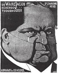 | Keywords: De Ware Jacob 3e jaargang nr. 16 16 januari 1904 Tekening van Albert Hahn.jpg De Ware Jacob 3e jaargang nr 16 16 januari 1904 Tekening van Albert Hahn Jan de Groot De Notenkraker Korte schets van een ˜politiek-satyriek weekblad ™ 1907-1936 Groningen 2006 1904 Albert Hahn sr 1877-1918 PD-art Albert Hahn sr Abraham Kuyper De Ware Jacob | ||||