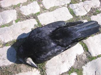 Keywords: Dead crow 3.JPG en dead rook bg Ð¼ÑŠÑ Ñ‚Ð²Ð° Ð²Ñ Ð°Ð½Ð° own Izvora 2009-03-24 West Nile virus Corvus dead Corvus frugilegus