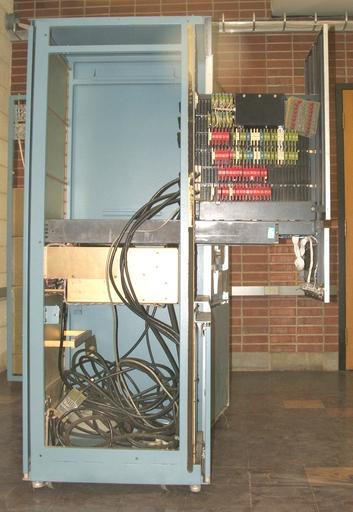 | Keywords: DEC PDP-8 SN 85 side.JPG 19-inch rack rack-mounted DEC PDP-8 serial number 85 delivered to the University of Iowa in early 1966 with rack side panel removed and computer extended from the rack on its mounting slides The shiny object below the mounting slides is the power supply The black cables extending down past the power supply are the I/O bus This photo documents the machine before the start of restoration work 2013-10-28 16 03 27 own Douglas W Jones cc-zero Uploaded with UploadWizard PDP-8 19 -Racks |