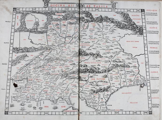 | Keywords: Decima Asiae Tabula II.jpg In decima tabula India citra gãgẽ fl The 10th Asian Map Decima Asiae Tabula from Jacopo Pencio's edition of Ptolemy's Geography depicting India within the Ganges India citra Gangem Fluvium 1511 https //archive org/stream/claudiiptholemae00ptol Claudius Ptolemaeus's Book on Geography Ptolemy other versions <gallery> File Decima Asiae tabula 7537888156 jpg </gallery> PD-old-70-1923 Maps in Latin 1511 maps Ptolemy's 10th Asian Map 1511 1511 Ptolemy Asia 10 | ||||