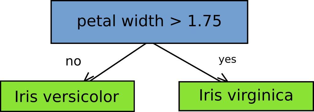 | Keywords: Decision stump.svg decision stump which discriminates between two of three classes in Fisher's Iris dataset - Iris versicolor vs Iris virginica Classification accuracy for these two classes is 94 Feature and threshold were selected by Weka's DecisionStump classifier own X7q 2010-06-15 Decision diagrams Tree diagrams Decision making |