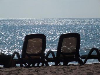 Keywords: deck chair beach holiday sea water relax sand beach summer