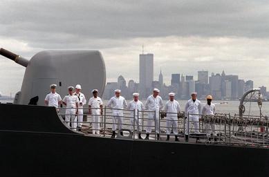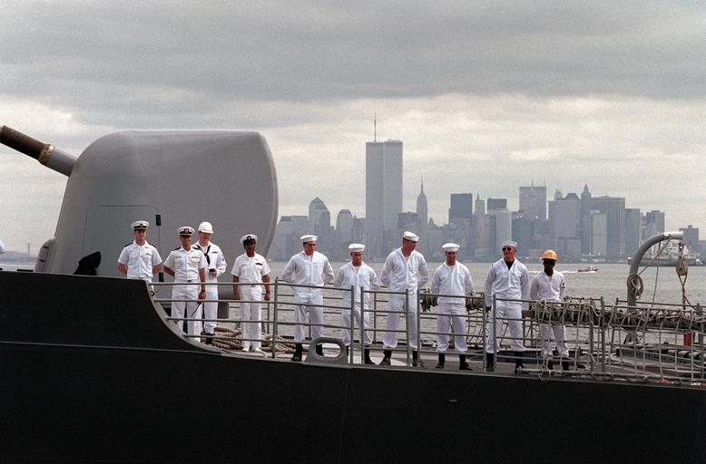 | Keywords: U. S. National Archives  Item: Members of the deck force of the guided missile cruiser USS NORMANDY (CG-60) standby as the ship gets underway from Naval Station Staten Island for the 50th anniversary commemoration of the June 6th D-Day Invasion of Europe. In the background is the New York City skyline highlighted by the World Trade Center, 5/18/1994  Series: Combined Military Service Digital Photographic Files, 1982 - 2007  catalog.archives.gov/id/6490657  Camera Operator: Ed Bailey U. S. National Archives  Item: Members of the deck force of the guided missile cruiser USS NORMANDY (CG-60) standby as the ship gets underway from Naval Station Staten Island for the 50th anniversary commemoration of the June 6th D-Day Invasion of Europe. In the background is the New York City skyline highlighted by the World Trade Center, 5/18/1994  Series: Combined Military Service Digital Photographic Files, 1982 - 2007  catalog.archives.gov/id/6490657  Camera Operator: Ed Bailey |