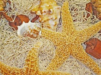 Keywords: deco starfish fishing net decoration dried nature collect tinker fish shell structure network decorative autumn port close coast ship sea water fishing maritime