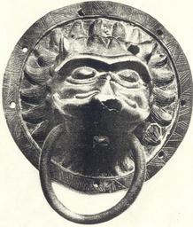 Keywords: Decorative door handle.jpg Decorative door handle Antaba Bronze cm 21 Object history Catalogue of stolen and missing cultural achievements / comp Jan Świeczyński; Ośrodek Informacyjno-Koordynacyjny Ochrony Obiektów Muzealnych Warsaw 1988 Editor Wojciech Jaskulski Piotr Ogrodzki See also http //kolekcje mkidn gov pl/katalog/podglad ID 11223 Department of National Heritage Wartime losses an official webpage of Polish Ministry of Culture Art and National Heritage century 12 The Meuse River Valley Magdeburg or Polish workshop Other versions Photo Photo Polish Ministry of Culture Art and National Heritage author < 1939 PD-Polish Anonymous-EU Metalwork lost in Poland during World War II 12th-century bronzes Bronze sculptures in Poland Romanesque sculptures in Poland Door knockers in Poland Romanesque door knockers |