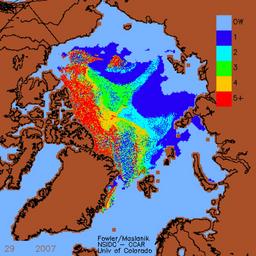 | Keywords: Decrease of old Arctic Sea ice 1982-2007.gif Animation showing decrease of old thick Arctic Sea ice 1982-2007 National Snow and Ice Data Center 2008-01 C Fowler and J Maslanik File Decrease of old Arctic Sea ice 1982-2007 ogv PD-USGov Animated GIF Maps of Arctic sea ice melting Sea ice ImageNote 1 179 273 43 54 420 420 2 Fram Strait ImageNoteEnd 1 ImageNote 2 102 283 54 52 420 420 2 Greenland Grönland ImageNoteEnd 2 ImageNote 3 255 360 54 46 420 420 2 Norway Norwegen ImageNoteEnd 3 ImageNote 4 269 79 58 49 420 420 2 Neusibirische Inseln ImageNoteEnd 4 |