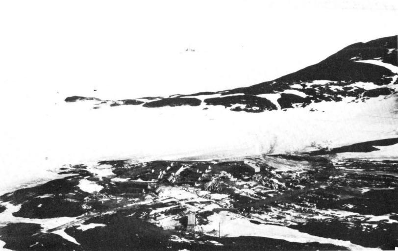 | Keywords: Deepfreeze I 018a.jpg Airopfac McMurdo Sound March 3 1956 Antarctica - showing glacier breaking to winter quarters bay on which facility is located Report of Operation DEEPFREEZE I 1955-56 U S Navy Task Force 43 Washington D C 843 pp 1956 United States Navy Original work of the US Federal Government - public domain PD-USGov Operation Deep Freeze I |