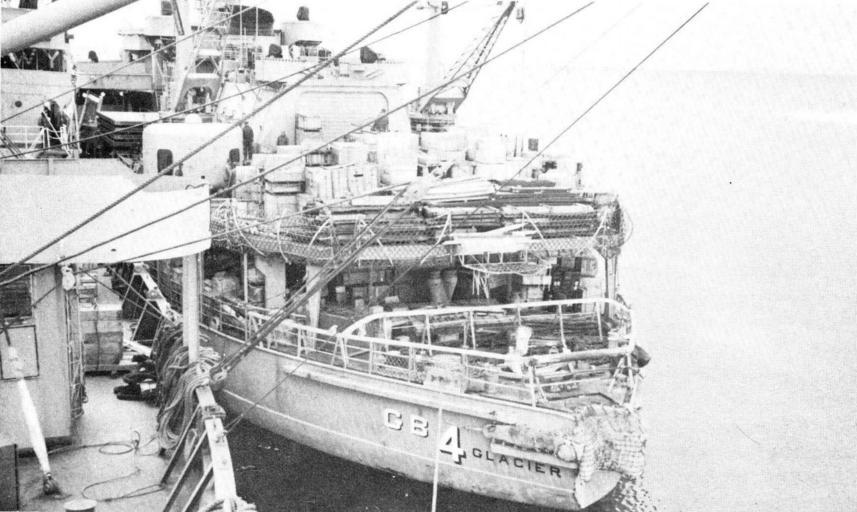 | Keywords: Deepfreeze I 476b.jpg Stern of USS Glacier showing 500 long tons of material onloaded from USS Wyandot for transfer to the air operating facility McMurdo Sound Report of Operation DEEPFREEZE I 1955-56 U S Navy Task Force 43 Washington D C 843 pp 1956 United States Navy Original work of the US Federal Government - public domain PD-USGov Operation Deep Freeze I USS Glacier AGB-4 |