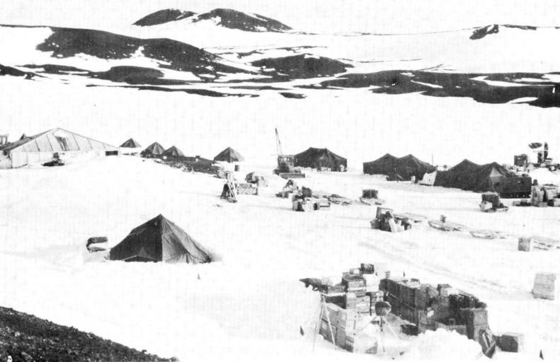 | Keywords: Deepfreeze I 776a.jpg Advance party tent camp Hut Point Ross island 1 Jan 1956 Report of Operation DEEPFREEZE I 1955-56 U S Navy Task Force 43 Washington D C 843 pp 1956 United States Navy Original work of the US Federal Government - public domain PD-USGov Operation Deep Freeze I |
