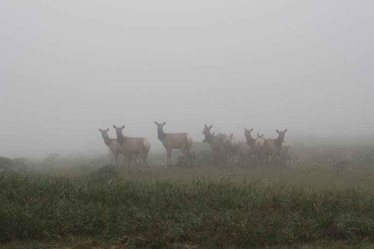 Keywords: deer point reyes seashore nature coast fog herd gray mist