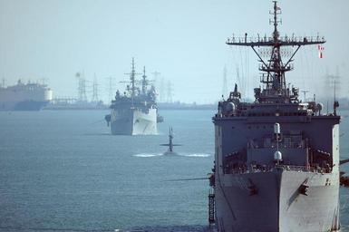 | Keywords: Defense.gov News Photo 060409-N-1429S-003.jpg en The USS Carter Hall LSD 50 USS Norfolk SSN 714 and amphibious transport dock ship USS Austin LPD 4 steam in file as they transit through the Suez Canal on April 7 2006 The ships of Expeditionary Strike Group Eight are on their way to the Mediterranean Sea after a deployment in the 5th Fleet area of operations 060409-N-1429S-003 Navy http //www defense gov/photos/newsphoto aspx newsphotoid 7862 2006-04-09 en Petty Officer 3rd Class Sean Stafford U S Navy PD-USGov-Military-Navy Defense gov news media for April 2006 Import by User Slick-o-bot/Defense gov News Photos USS Carter Hall LSD-50 USS Norfolk SSN-714 USS Austin LPD-4 Taken with Nikon D70 |