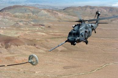 Keywords: Defense.gov News Photo 050714-N-8629M-103.jpg en A U S Air Force HH-60H Pave Hawk helicopter approaches a refueling basket as it prepares to refuel in flight from an HC -130 Hercules during training Exercise Desert Rescue over Fallon Nev on July 14 2005 Desert Rescue is a multi-service multi-national training exercise to prepare combat search and rescue teams to extract downed personnel in a variety of environments and situations 050714-N-8629M-103 Navy http //www defense gov/photos/newsphoto aspx newsphotoid 6853 2005-07-14 en Petty Officer 3rd Class Rebecca J Moat U S Navy PD-USGov-Military-Navy Defense gov news media for July 2005 Import by User Slick-o-bot/Defense gov News Photos Photos taken with Nikon D2H Sikorsky HH-60 Pave Hawk HH-60H Rescue Hawk