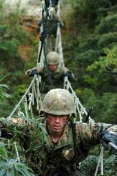 Keywords: Defense.gov News Photo 050225-N-9712C-002.jpg en U S Marines cross a three-strand bridge through the treetop canopy at the beginning of an endurance course at the Jungle Warfare Training Center on Camp Gonslaves Okinawa Japan on Feb 25 2005 The course is a 3 4-mile obstacle course and is part of a weeklong jungle skills training class 050225-N-9712C-002 Navy http //www defense gov/photos/newsphoto aspx newsphotoid 6188 2005-02-25 en Petty Officer 3rd Class John P Curtis U S Navy PD-USGov-Military-Navy thumb left Defense gov news media for February 2005 Import by User Slick-o-bot/Defense gov News Photos Defense gov photos requiring renaming Photos taken with Nikon D2H United States Marine Corps training Camp Gonsalves Bridges in Okinawa prefecture United States Marine Corps in Okinawa prefecture Obstacle courses |