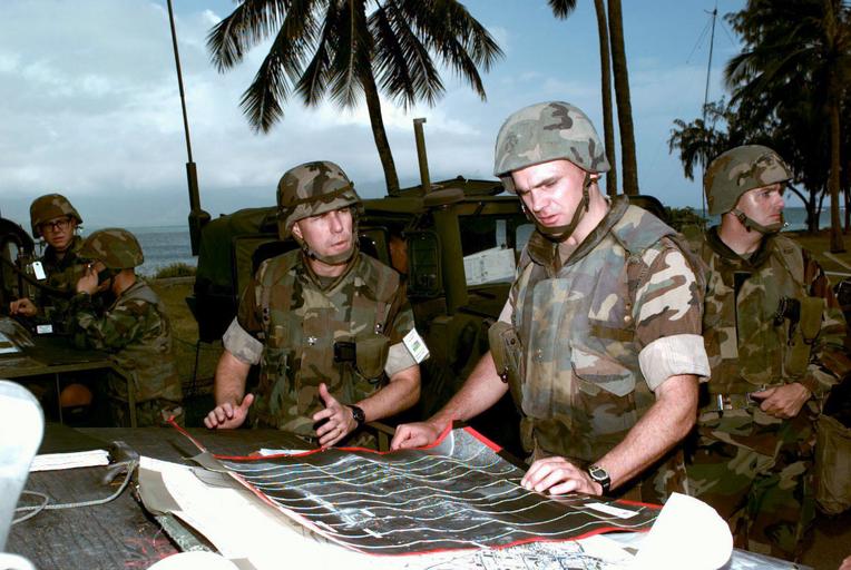 | Keywords: Defense.gov News Photo 960611-N-4142G-008.jpg en U S Marine officers review their perimeter security at a simulated U S Embassy in the fictitious country of Pacifica during a Noncombatant Evacuation Operation exercise on June 11 1996 at Kaneohe Bay Marine Corps Station Hawaii as part of exercise RIMPAC '96 More than 44 ships 200 aircraft and 30 000 soldiers sailors Marines airmen and Coast Guardsmen are involved in the exercise The purpose of RIMPAC '96 is to improve coordination and interoperability of combined and joint forces in maritime tactical and theater operations Australia Canada Chile Japan the Republic of Korea and the U S are participating in the exercise 960611-N-4142G-008 Navy http //www defense gov/photos/newsphoto aspx newsphotoid 385 1996-06-11 en Petty Officer 2nd Class Felix Garza Jr U S Navy PD-USGov-Military-Navy RIMPAC Defense gov photos requiring renaming Defense gov news media for June 1996 Import by User Slick-o-bot/Defense gov News Photos United States Marine Corps Photographs by Felix Garza Jr |