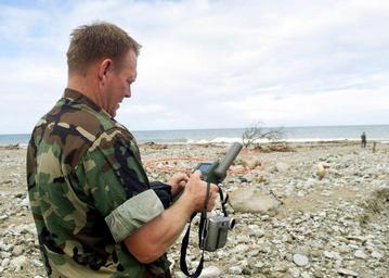 Keywords: Defense.gov News Photo 000103-N-5448C-004.jpg en Navy Chief Warrant Officer Paul Patterson uses a global positioning system receiver to calculate coordinates for a potential amphibious landing zone at a beach near Makuto Venezuela on Jan 3 2000 Patterson is an engineering reconnaissance team member for Joint Task Force Fundamental Response Nearly 100 U S service men and women are delivering supplies and providing humanitarian assistance to flood and mud slide survivors in Venezuela as part of Operation Fundamental Response 000103-N-5448C-004 Navy http //www defense gov/photos/newsphoto aspx newsphotoid 2632 2000-01-03 en Petty Officer 2nd Class Russell Carter U S Navy PD-USGov-Military-Navy 3 January 2000 in Venezuela 2000 photographs Battle Dress Uniform in 2000 Import by User Slick-o-bot/Defense gov News Photos January 2000 in South America Male soldiers People of the United States in 2000