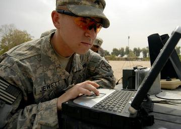 | Keywords: Defense.gov News Photo 080825-N-6278K-035.jpg en U S Army Cpl Taylor Jewett learns the operations of the RQ-11B Raven unmanned aerial system at Joint Security Station Doura Baghdad Iraq on Aug 25 2008 The Raven provides intelligence reconnaissance and surveillance Jewett is assigned to Delta Company 2nd Battalion 4th Infantry Regiment 10th Mountain Division 080825-N-6278K-035 http //www defense gov/photos/newsphoto aspx newsphotoid 10521 2008-08-25 en Petty Officer 2nd Class Joan E Kretschmer U S Navy PD-USGov-Military Import by User Slick-o-bot/Defense gov News Photos Defense gov photos requiring renaming Taken with Nikon D200 AeroVironment RQ-11 Raven People using computers in the 2010s RQ-11B Raven |