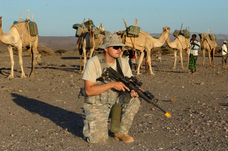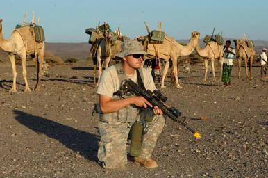 Keywords: Defense.gov News Photo 071110-N-3931M-196.jpg en A U S service member from Combined Joint Task Force - Horn of Africa monitors the terrain while conducting a tactical movement exercise as part of a desert survival course conducted by the French military in Sida Djibouti on Nov 10 2007 U S service men and women are being instructed on land navigation global positioning systems what to eat to survive using camels to transport equipment helicopter medical evacuations starting a fire and techniques for rigging traps 071110-N-3931M-196 Navy http //www defense gov/photos/newsphoto aspx newsphotoid 9718 2007-11-10 en Petty Officer 1st Class Michael R McCormick U S Navy PD-USGov-Military Import by User Slick-o-bot/Defense gov News Photos Defense gov photos requiring renaming Taken with Nikon D2X United States military in Djibouti M4 carbine with blank-firing adaptor |