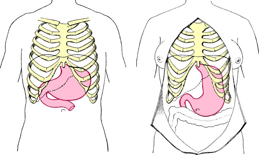 | Keywords: Deformed stomach corset.png en The damage on stomach from the use of corset da Skader pÃ¥ mavesækken som skyldes brugen af korsetter L ™Estomac et le Corset DR EUGÈNE CHAPOTOT 1893 PD Image EstomacCorset_page066_ png PD-Art Corsets_and_health Language-neutral diagrams |