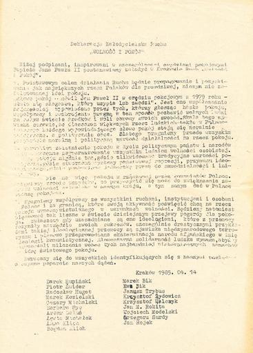 Keywords: Deklaracja założycielska WIP.jpg en oryginalna deklaracja założycielska Ruchu Wolność i Pokój 1985-04-14 13 21 34 own Ghj45klm67 other versions cc-zero Uploaded with UploadWizard Politics of Kraków